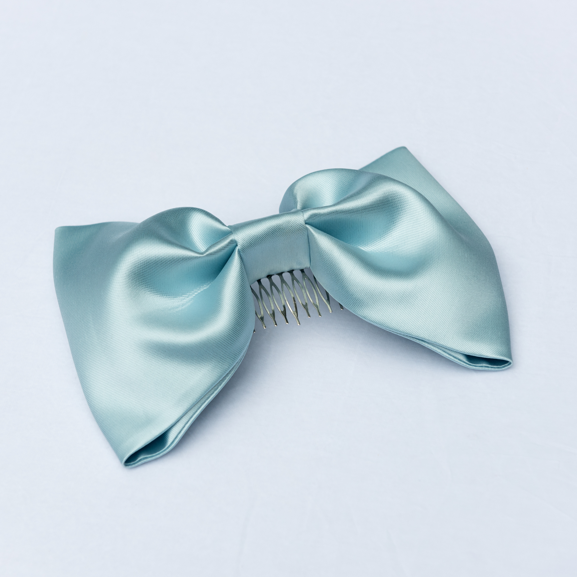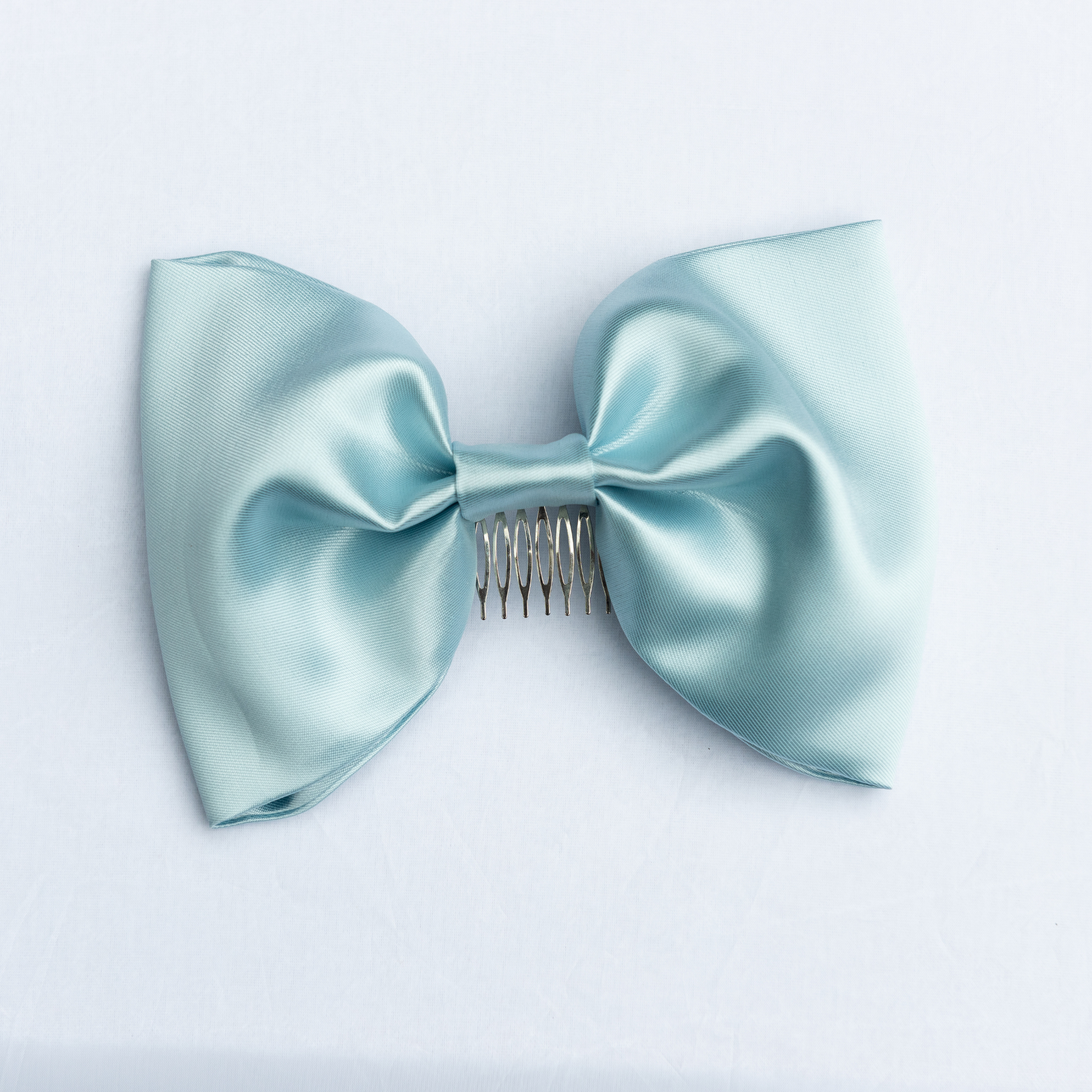 Crisp and luminous polyester mikado on silver comb - please let us know if you require a gold comb. Custom bows can be made in pure silk or other colours, please email enquiries@velvethammerofficial.com
