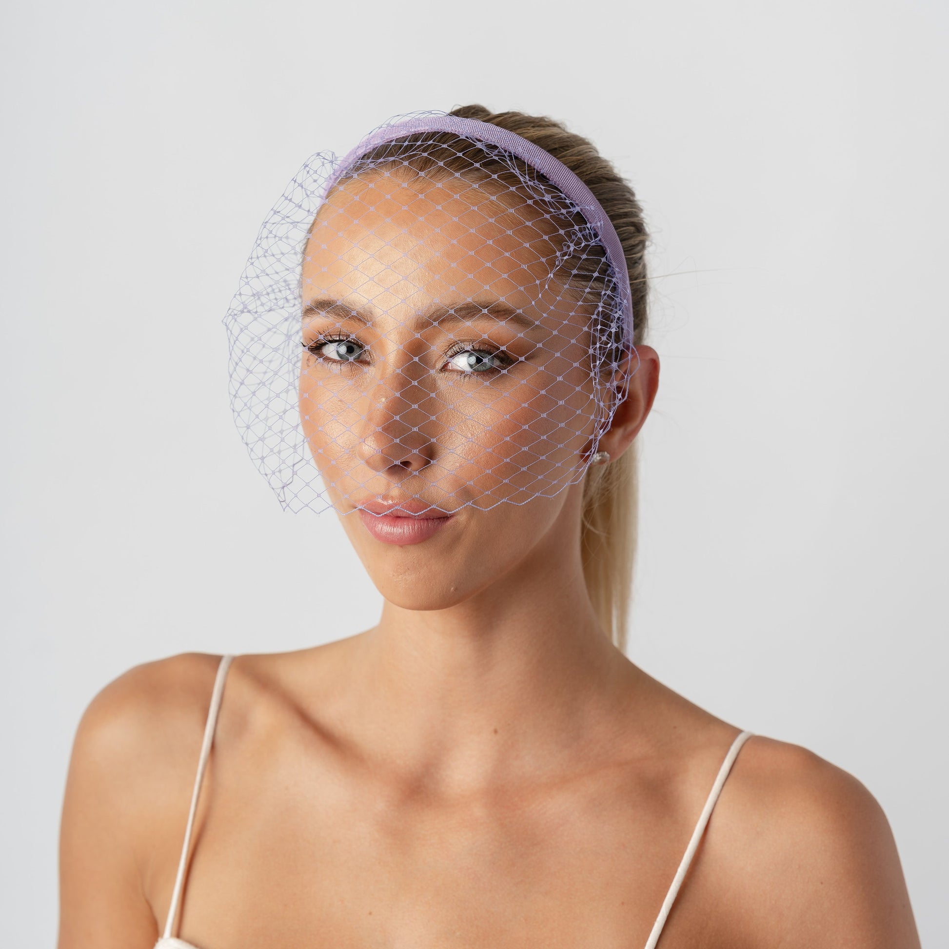 Pictured here in the 3/4 veil size. Veiled headbands can be worn on their own or layered under a Velvet Hammer Embellished Headband