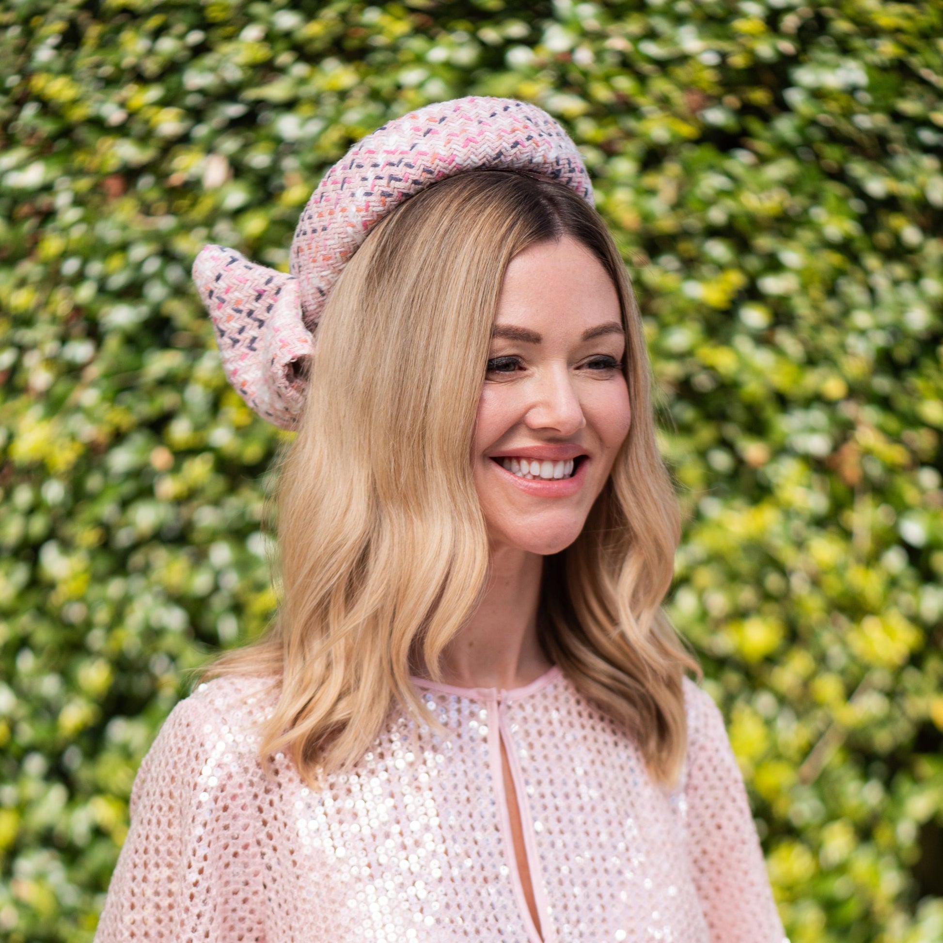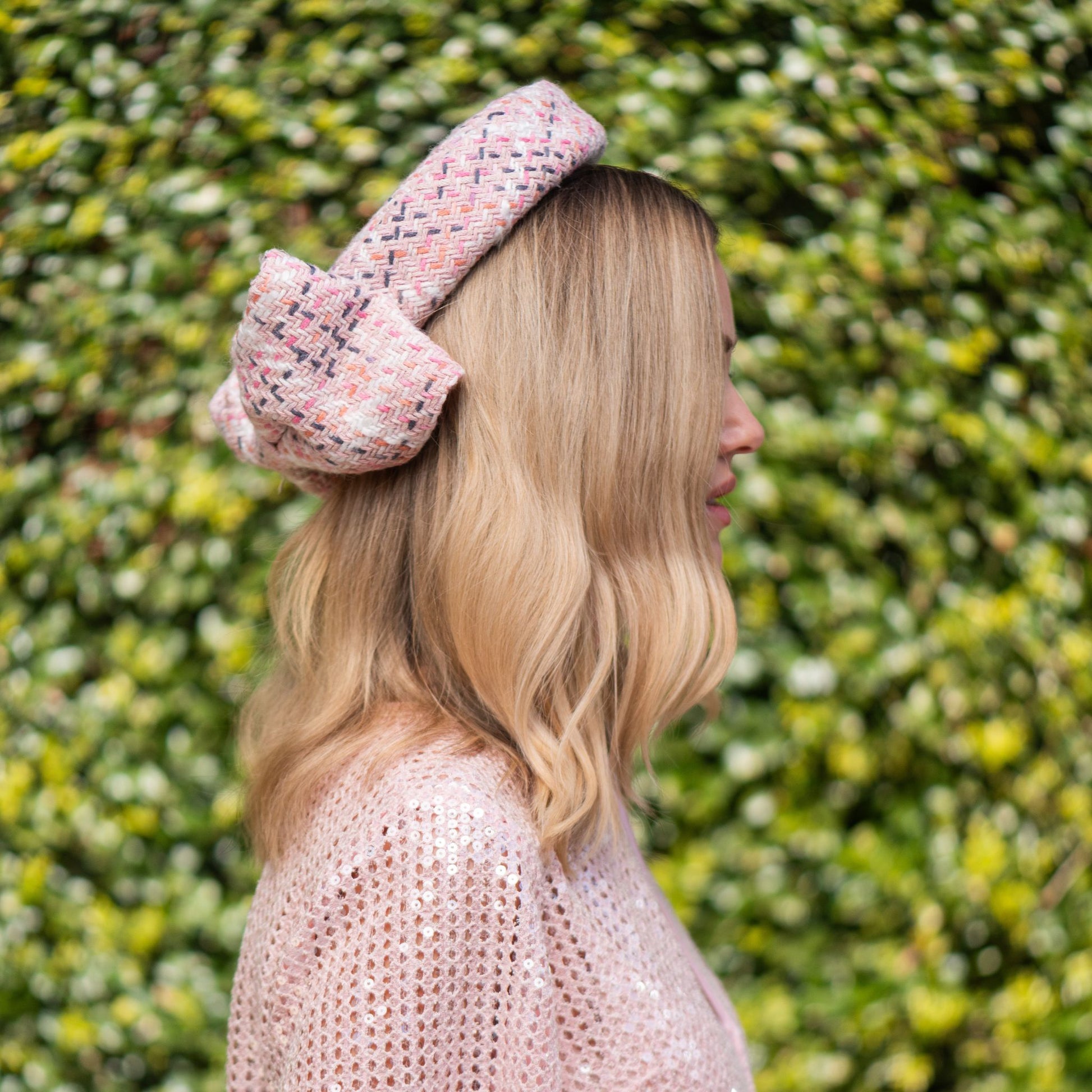 Introducing the limited edition Velvet Hammer Chanel Tweed Pillbox: a study in refined upcycling, where storied fashion heritage meets modern sustainability. Each pillbox is handcrafted in Sydney using rare, authentic CHANEL tweed—sourced from a surplus, unused roll direct from the atelier and reimagined into a headpiece destined for future generations. The sculpted pillbox silhouette is accented by our signature curved bow, marrying Parisian elegance with a slow fashion conscience.