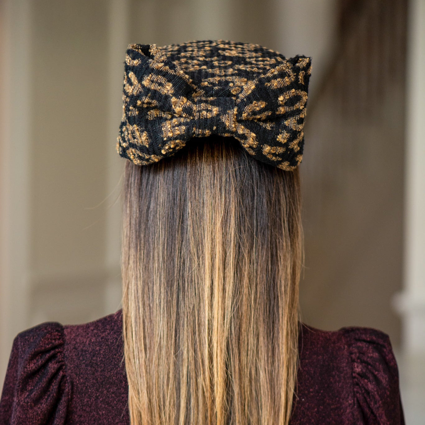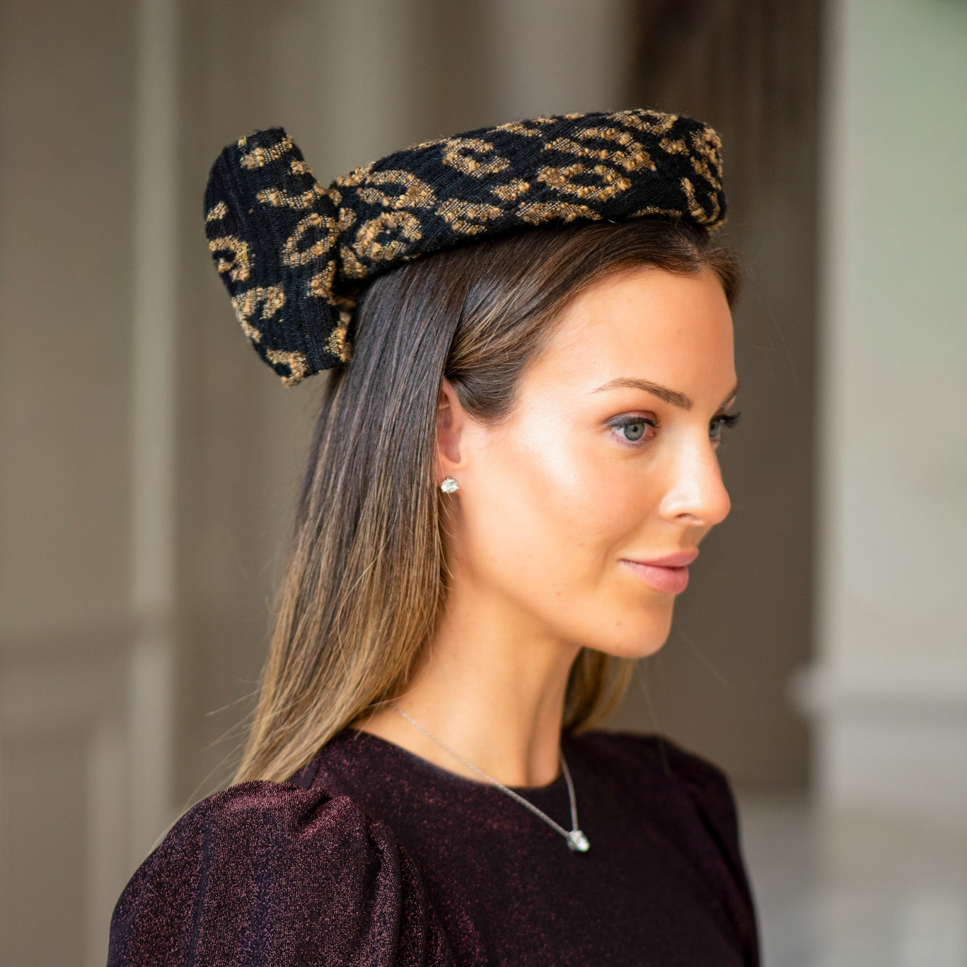 Pillbox in Roberto Cavalli tweed with Bow in Leopard