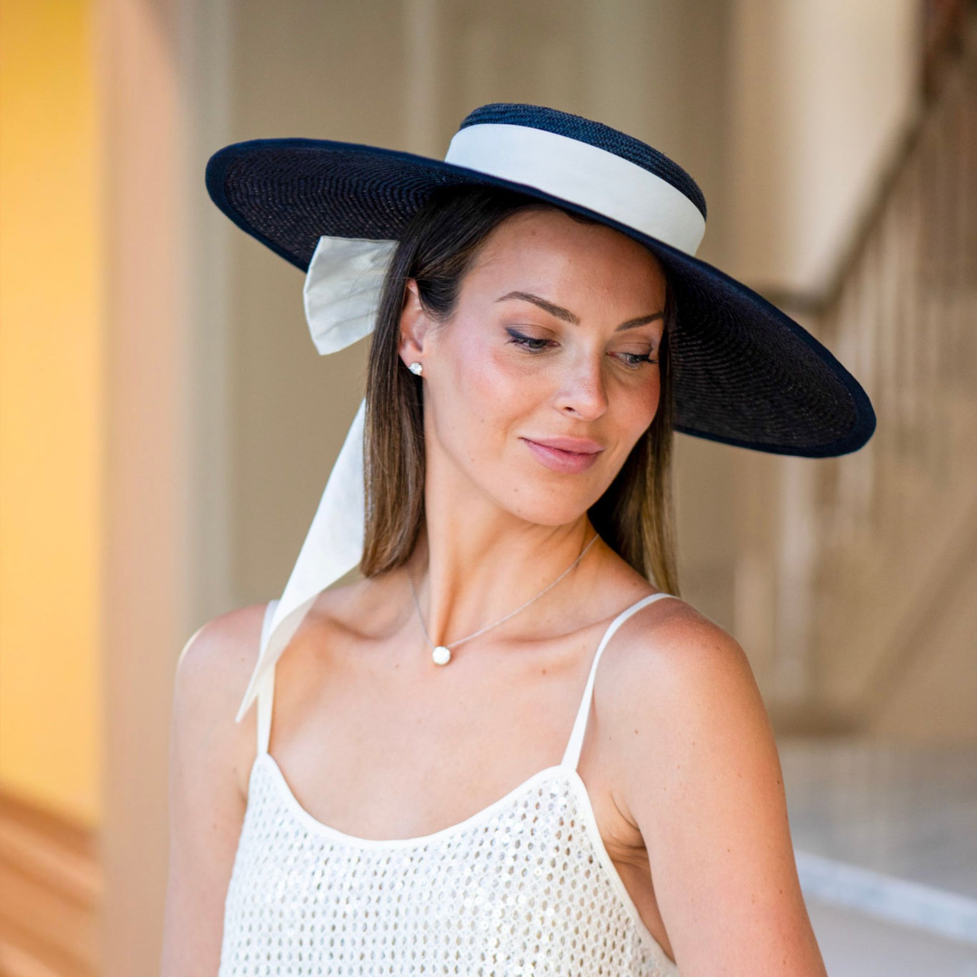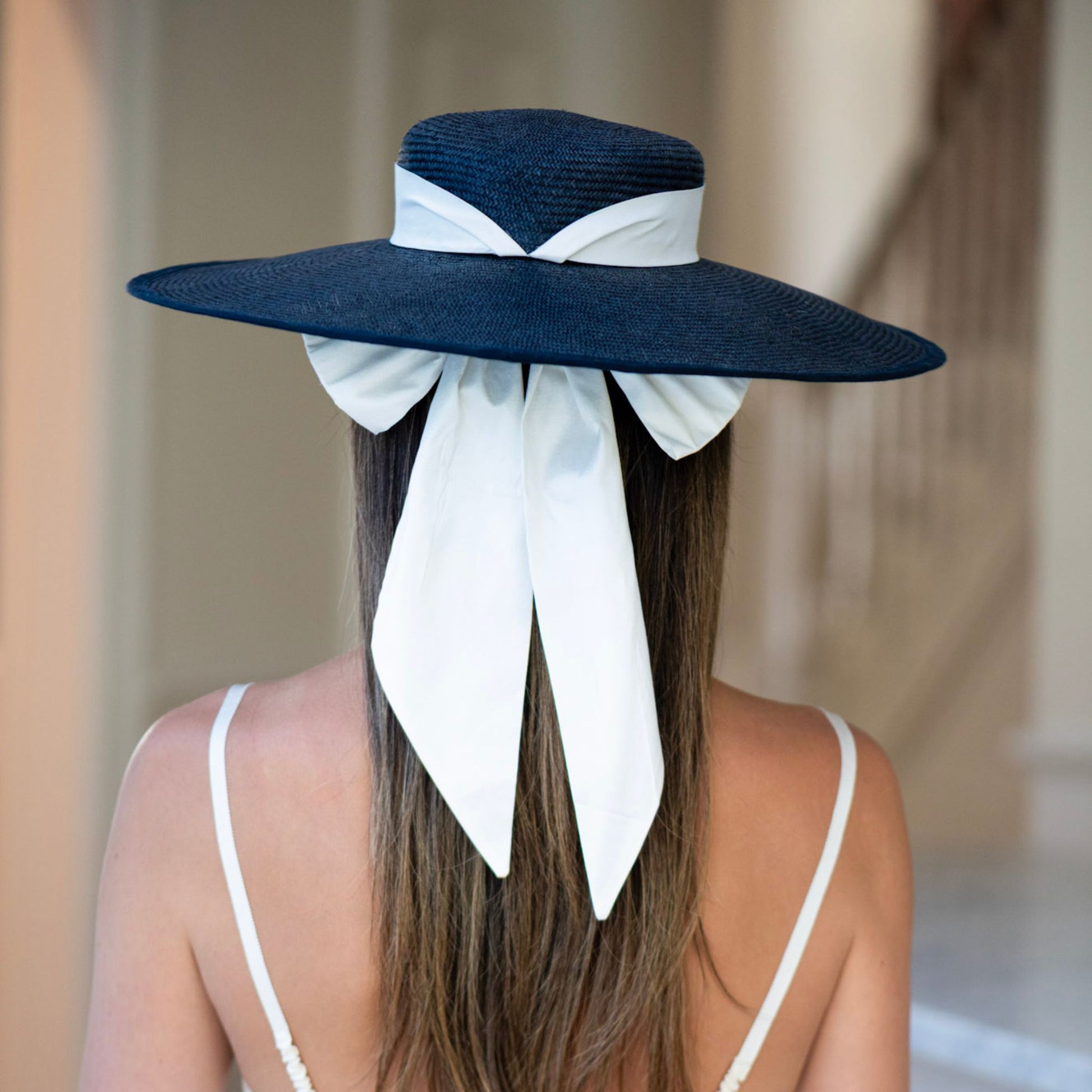Some hats turn heads. The Leading Lady holds the room. Handcrafted from the finest navy parasisal straw, this wide-brimmed beauty has all the hallmarks of true millinery luxury: feather-light on the head, luminous in the light, and timeless in its silhouette.