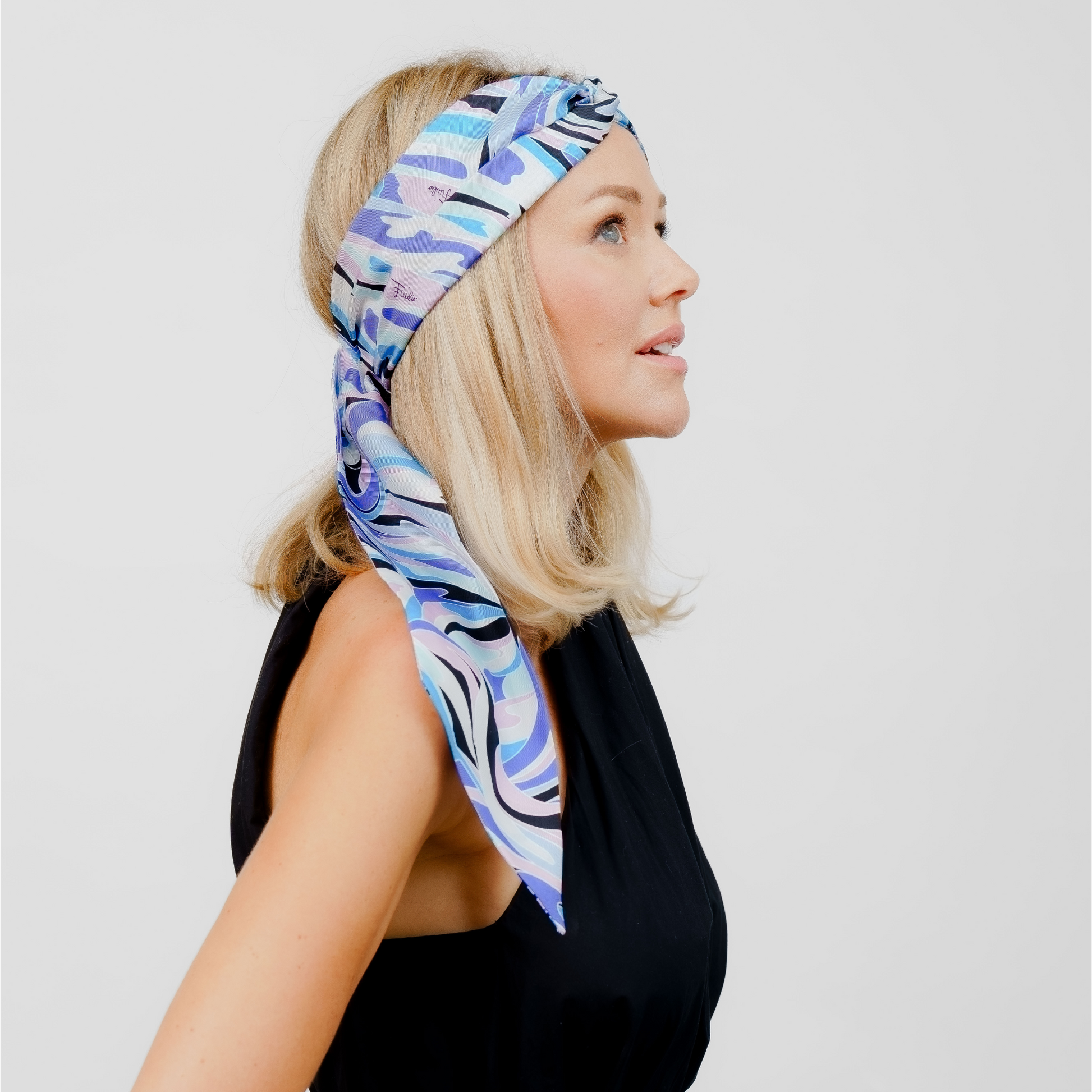 Sustainable Pucci 100% silk pre-tied headscarf in blue